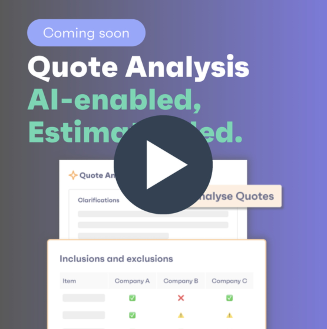 Quote analysis: AI enabled, estimator-ledWe all know the pressure. It’s the final days of a tender, your inbox is overflowing, and you’re sifting through a dozen quotes in different formats, each with its own inclusions, exclusions, and risks. You need to be thorough, but the clock is ticking and you can’t afford to miss a critical scope gap. This is where we saw a real tangible opportunity for AI to help, not hinder. Our new AI-powered Quote Analysis accelerates the time-consuming analysis: